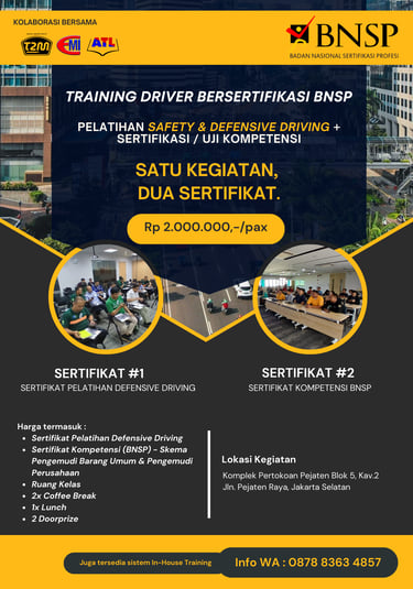 Pelatihan berbasis kompetensi untuk 5 elemen mengemudi antisipatif (Defensive Driving).